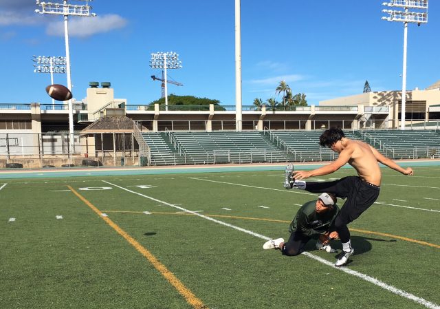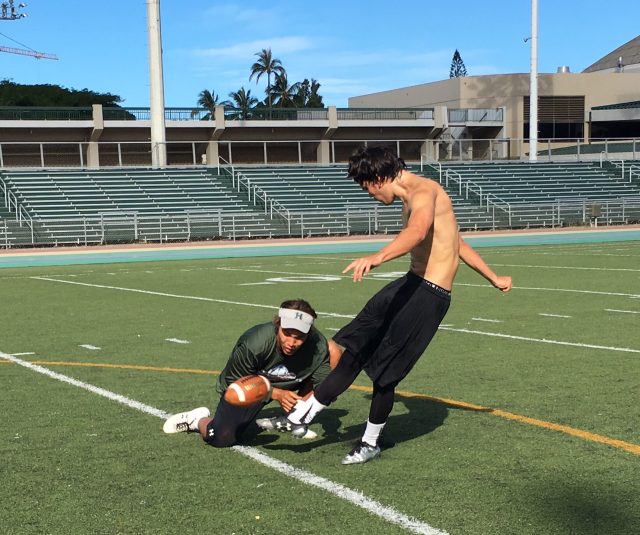 The Warriors are trying to rebuild the triangle offense following the graduations of short-snapper Brodie Nakama, holder Ikaika Woolsey and kicker/punter Rigo Sanchez.