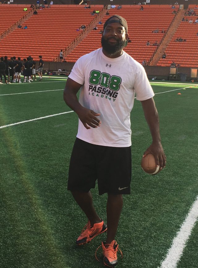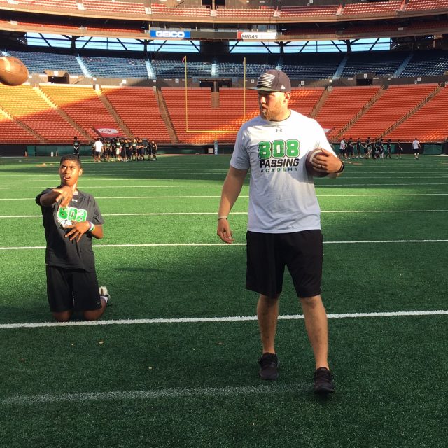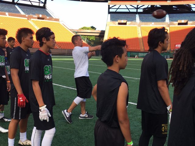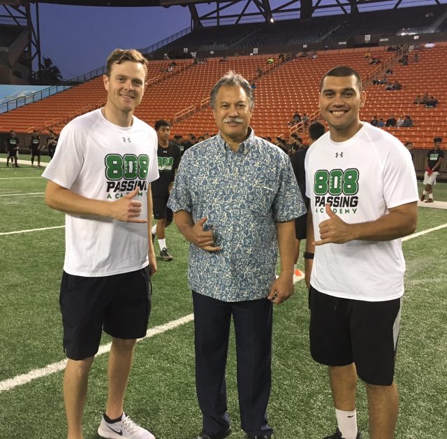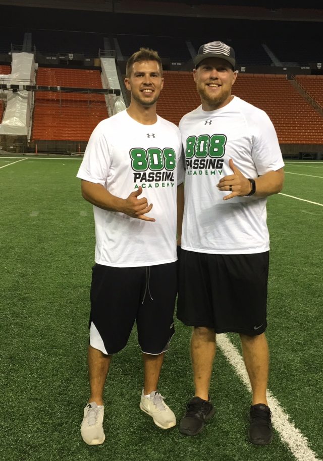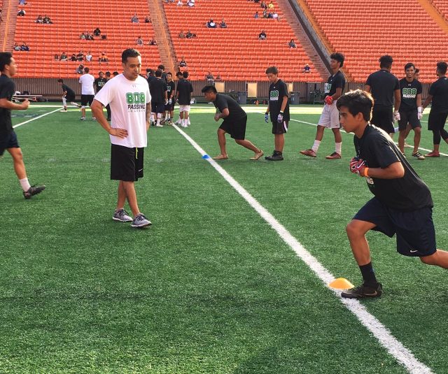 Former UH quarterback Sean Schroeder was the organizer. Schroeder,PAAMCO and individual donors paid all the expenses for the free camp for quarterbacks and receivers at Aloha Stadium.