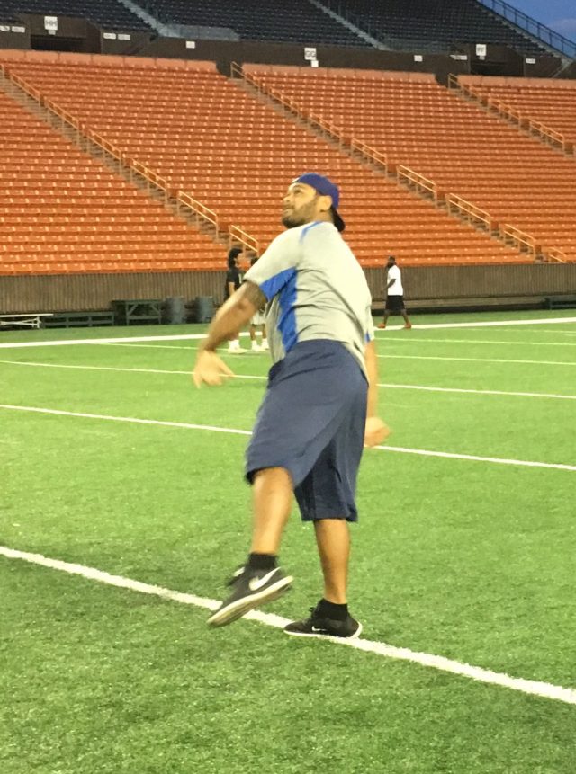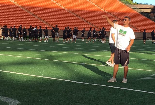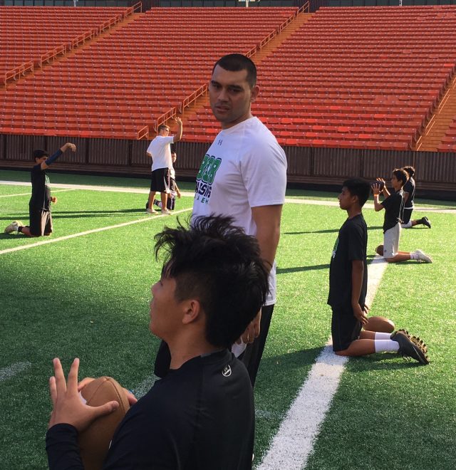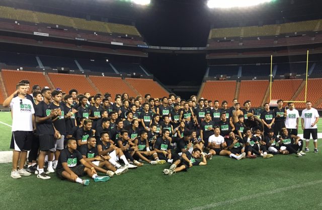 Participants received Under Armour dry-fit shirts, snacks and instruction from Vince Passas, Robby Toma, Miah Ostrowski, Jeremiah Cockheran, TJ Taimatuia, Andrew Manley, Cayman Shutter, Jeremy Higgins, Kamuela Alo and Schroeder.