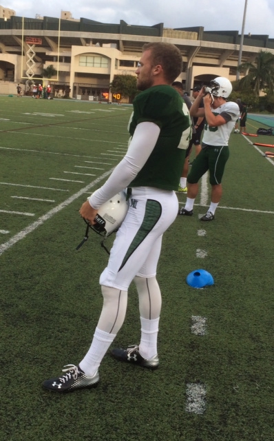Two weeks after wideout Keith Kirkwood transferred to Temple, wideout Vasquez Haynes confirmed he would undergo surgery for a torn labrum in his right shoulder. The recovery period is between three and four months, and because UH’s football season is about four months … let’s see, carry the 3 … Haynes will miss the season. And then prized freshman Devan Stubblefield suffered a season-ending injury to his left knee. No surgery date has been set, but repair work will begin with the ACL and, after that, the meniscus. The top two outside receivers have had a good first week. Quinton Pedroza, who lost weight (his body fat is down to about 10 percent) and gained speed, has made the adjustment from slotback. Marcus Kemp has made some big catches in scrimmage-like sessions. During yesterday’s first practice, Kemp was a punt returner. He was just helping out, but that shows the confidence the coaches have in Kemp’s catching skills. And Kemp said he wants to viewed as a go-to receiver. He’s a much different receiver than last year, when he was used in cameos or Hail Mary situations.